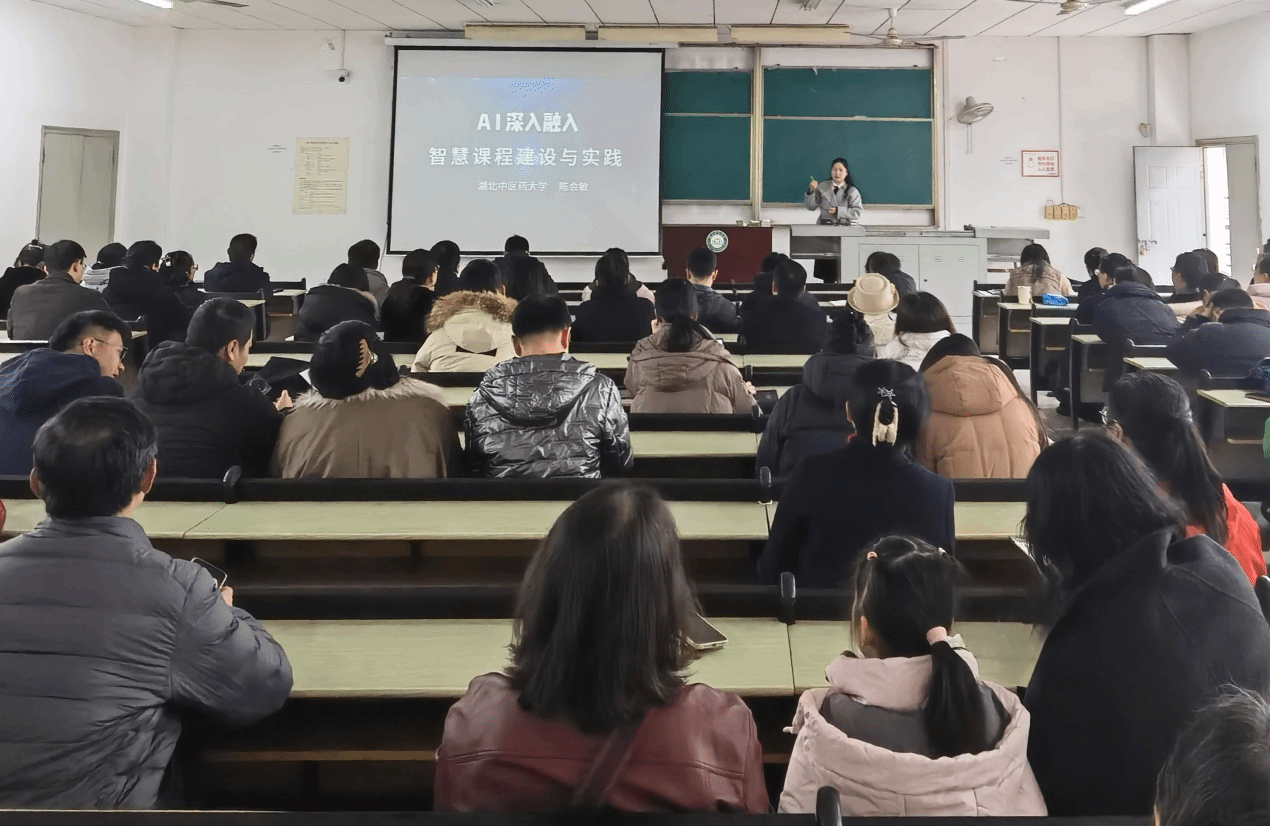 会上,陈会敏教授开展了题为《AI深入融入智慧课程建设与实践》的专题讲座,为全院教师带来了一场前沿的教育理念分享。陈教授结合其主持的国家级一流课程《生物化学》智慧课程建设经验,深入浅出地阐述了人工智能赋能教学改革的创新路径。她在生物化学课程教学改革中历经多年探索,构建了“知识、能力、问题、思政”四大图谱,打造了垂直领域AI智能体与“师-生-机”三元交互学习共同体。通过课前AI助学、课中AI助教、课后AI助评的全流程重塑,实现了从“重知识”向“强能力、铸素养”的转变。特别是中西医融合课程群知识图谱的建设,成功打破了学科壁垒,让学生能从分子层面理解中西医相关课程原理,为中医药人才培养提供了数智化新方案。该课程案例已入选国家教育行政学院课程资源库及2025年教师人工智能应用高等教育典型案例,具有极高的参考价值。