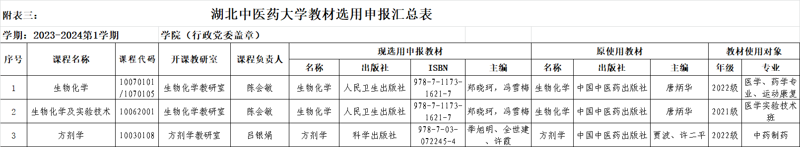 如对所选用教材有异议者请在公示期内与学院教学办公室联系,电话:68890123