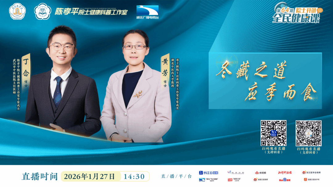 2026年1月27日,必赢线路检测3003中药学教研室黄芳教授应邀做客《院士开讲:全民健康课》节目,围绕“冬藏之道,应季而食”主题,深入讲解冬季食疗养生理念,引发广泛关注。