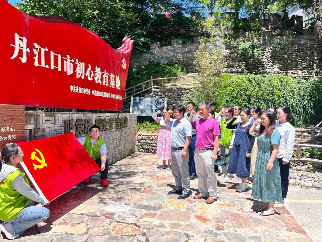 7月7日下午,实践团最后一站来到吕家河村“红三军司令部旧址”开展党建红色文化教育主题活动,吕家河村党支部书记易明谦同志为师生讲述了“鄂西北第一面红旗升起”的革命历史,介绍了贺龙元帅率领的红三军来到官山把司令部设在吕家河泰山庙,恢复成立了均县苏维埃政府政权,建立了鄂西北革命根据地,红色火种在十堰大地上熊熊燃烧的详细经历,让全体师生切身感受到如今幸福美满的生活凝聚了无数革命先辈的血汗与努力。全体党员步行来到党旗下,在学院相关负责人的带领下,面对鲜红的党旗,举起右手,庄严宣誓。铮铮入党誓词既表达了全体党员对党的无限忠诚,也表达了全体党员传承红色基因和为党的事业奋斗终生的坚定信念。