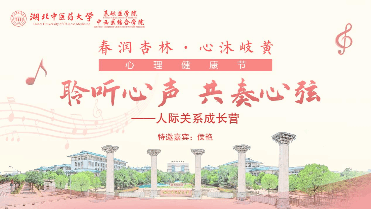4月24日,必赢线路检测3003“春润杏林·心沐岐黄”心理健康节系列活动迎来第二期——“聆听心声 共奏心弦——人际关系成长营”。本次活动特邀业内资深专家老师候艳亲临指导,为同学们带来了一场别开生面的心灵成长之旅。