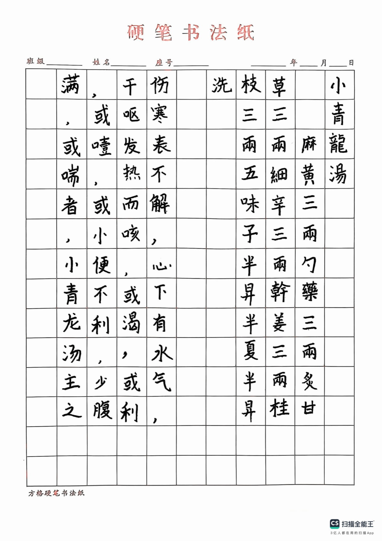 随后,同学们拿出纸笔,一展笔墨技艺,或临摹医方、或开展创作。医方书写规则有序,复诊调整剂量时圈点批划,形成独特的艺术之美,学生们手持毛笔,蘸满墨汁,凝神静气,一笔一划充满了对传统文化的敬仰与传承。学生在抄写学习秀美的医方时除了体会医家书法的规整讲究,还能深深感受先辈们的精进、勤奋,增强中医药文化自觉性,做到“传承精华,守正创新”。